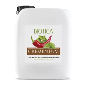 CREMENTUM Aromatiche è un concime liquido biologico estratto da materie prime naturali e specificamente indicato per peperoncini e piante aromatiche come basilico, prezzemolo, rosmarino, origano, salvia, menta, etc. Grazie alla presenza di azoto organico a rilascio graduale, migliora lo sviluppo vegetativo della pianta. Il potassio come fonte prontamente disponibile aumenta la pezzatura e rende più intensa la colorazione delle foglie e dei frutti, migliorandone il sapore.