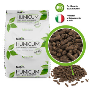 HUMICUM è humus di lombrico, un ammendante 100% naturale ottenuto dal compostaggio ad opera dei lombrichi, di letame bovino, ovino ed equino maturo non proveniente da allevamenti industriali. HUMICUM, grazie alla presenza di un elevata quantità di sostanza organica umificata, migliora le caratteristiche chimico-fisiche del terreno risultando ideale nel sostenere un migliore sviluppo di tutte le colture. Inoltre HUMICUM migliora le caratteristiche biologiche del terreno favorendo l’insediamento nel suolo di un importante biodiversità microbica. Si tratta di un prodotto inodore che non brucia le radici, consentito in agricoltura biologica ai sensi del “D.Lgs 75/2010”. Aumenta sensibilmente la fertilità del terreno Migliora la struttura e incrementa l’attività di microflora e microfauna; Favorisce lo sviluppo dell apparato radicale Crea un ambiente ideale per lo sviluppo di radici attive ed efficienti Svolge un azione Antistress Stimola la crescita delle piante aiutandole a superare diverse fasi di stress (trapianto, carenze nutrizionali, forti sbalzi di temperatura) Incrementa la capacità del terreno di trattenere acqua migliora la capacità di ritenzione idrica regolando la porosità del terreno, riducendo di conseguenza il fabbisogno irriguo della coltura Rinforza le difese naturali delle piante Incrementa le naturali difese delle piante nei confronti delle avversità Migliora la disponibilità di nutrienti per le piante Migliora la capacità del terreno di trattenere gli elementi minerali e li rende maggiormente disponibili per le piante Favorisce lo sviluppo vegetativo, la maturazione e la colorazione dei frutti L’incremento dell’assorbimento di elementi minerali da parte della pianta e la presenza di sostanze con effetto fitostimolante determinano un miglioramento quali-quantitativo della produzione finale, oltre che un incremento della superficie fogliare.
