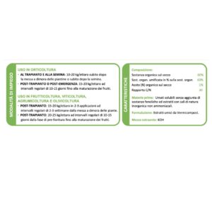 lombrico. Si tratta infatti di un attivatore ad alta concentrazione di sostanza organica umificata, ottenuto da Vermicompost